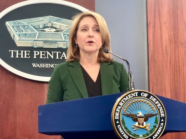 DefenseScoop’s Brandi Vincent interviews Gen. Jackie Van Ovost on Sept. 17, 2024, on the sidelines of AFA’s Air, Space and Cyber conference at National Harbor, Maryland. (Photo by Natalie Powell. Public Affairs Specialist, U.S. Transportation Command)