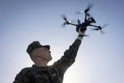 U.S. Marine Corps Lance Cpl. Zachary Voorhees, a small unmanned aircraft system operator with 2nd Battalion, 7th Marines operates a Skydio X2D during a small unmanned aerial systems training (sUAS) on Camp Hansen, Okinawa, Japan, Nov. 6, 2025. (U.S. Marine Corps photo by Lance Cpl. Robert Blanks)