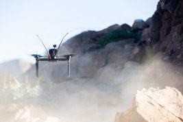 A Neros Archer first-person view drone takes off from the ground during a service level training exercise at Marine Corps Air-Ground Combat Center, Twentynine Palms, California, Jan. 27, 2026. (U.S. Marine Corps photo by Cpl. Keegan Jones)