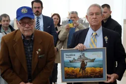 Reps. Steve Cohen, D-Tenn., and Joe Wilson, R-S.C., visit the exhibition of photos featuring war crime sites and civilians innocently killed by Russian occupiers at the Church of Saint Andrew the First-Called Apostle and All Saints, Bucha, Kyiv Region, northern Ukraine. (Volodymyr Tarasov / Ukrinform/Future Publishing via Getty Images)